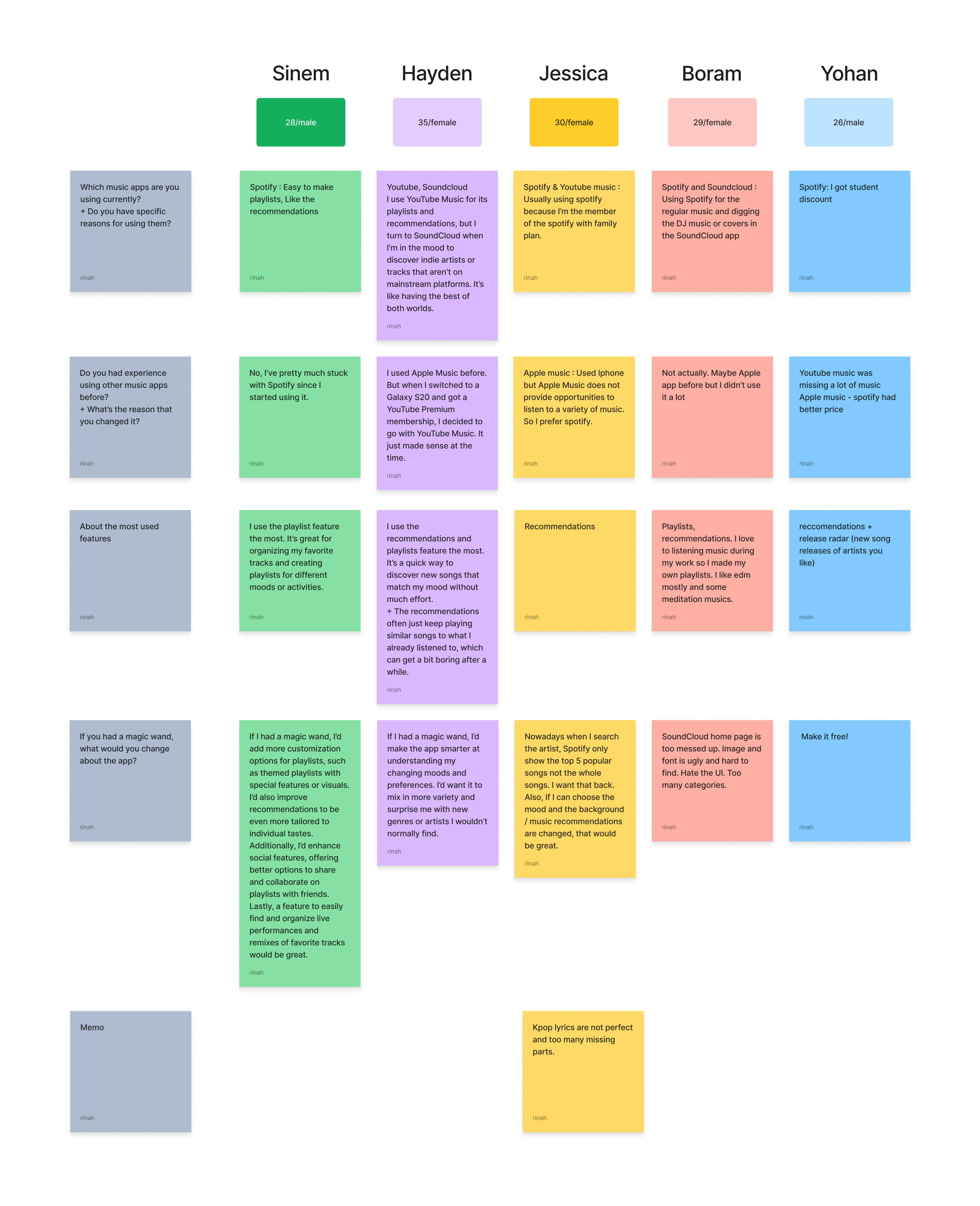 With user interview, I conducted results to affinity map to using the FigJam. Here are key findings,